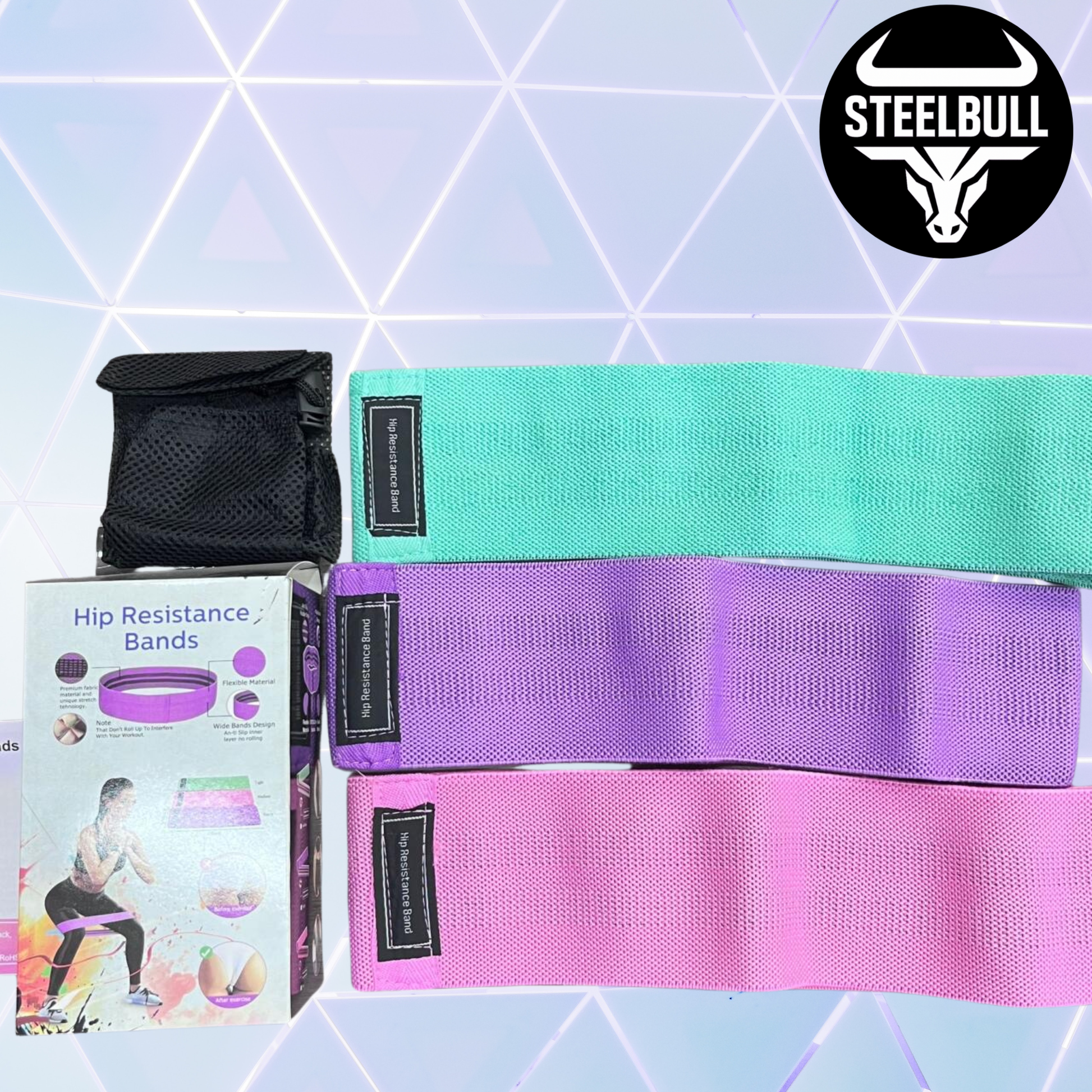🍑 ¡Activá tus músculos como nunca antes! El Set de 3 Bandas Elásticas de Tela STEELBULL es tu arma secreta para esculpir el tren inferior y llevar tus sentadillas, puentes de glúteo y patadas laterales al siguiente nivel.